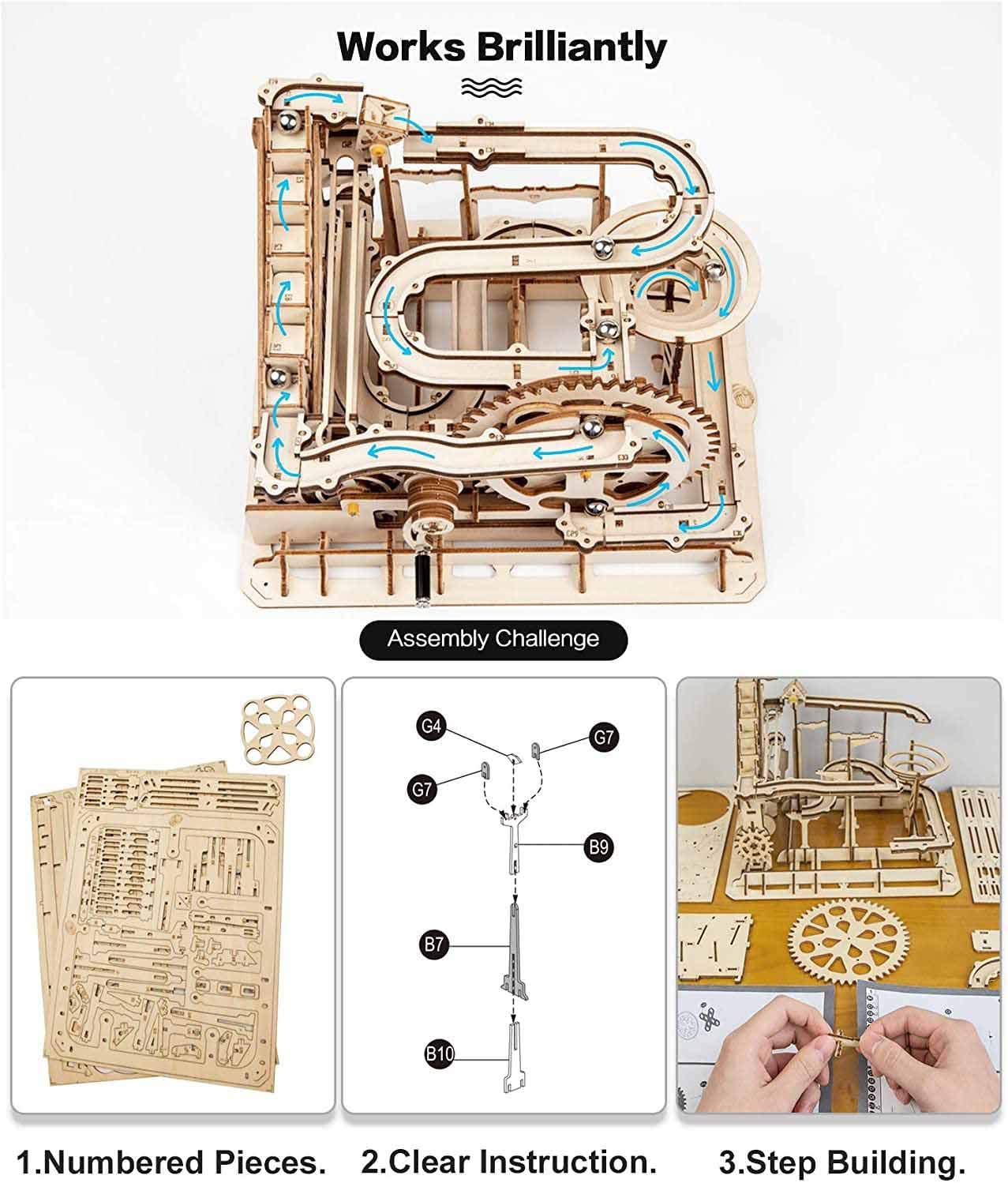 Robotime Marble Run DIY Waterwheel | Wooden Model Building Block Kit | 238pcs